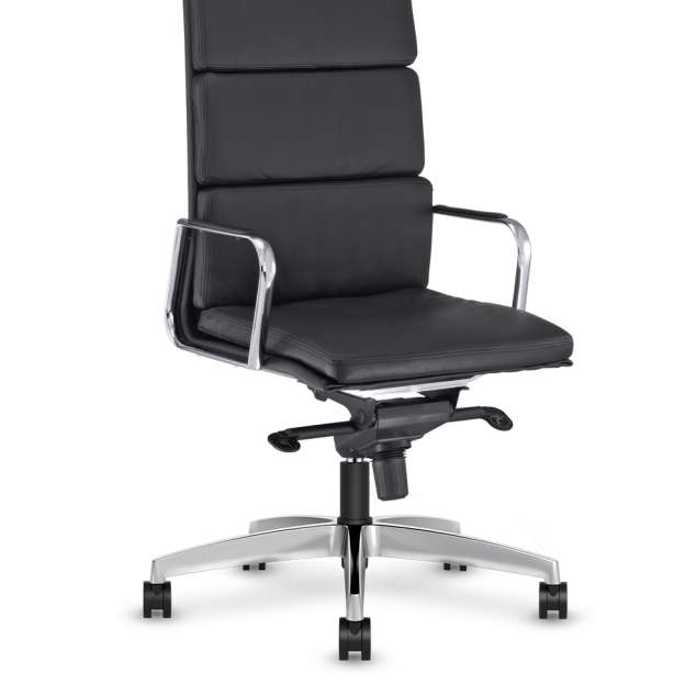 The superior and trendy Mondeno series includes a high-back and low-back chair, with either a chrome armrest with leather or a full chrome armrest available. Thick and thin–cushioned seats and backs offer different comfort level options. The comfortable knee-tilting mechanism makes the chair convenient to move and adjust.